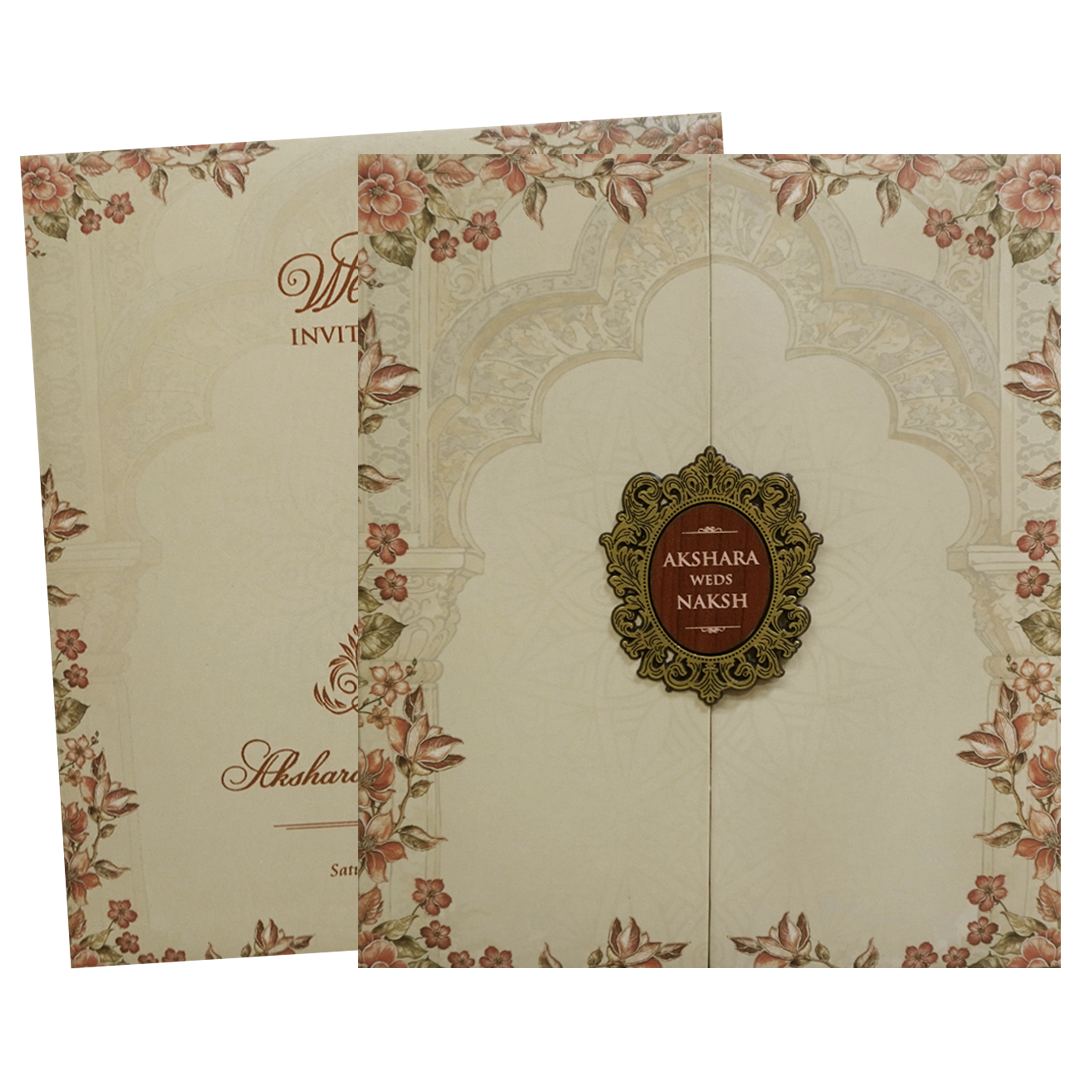 Cream Floral Embossed Wedding Card-KNMS9308Cream Floral Embossed Wedding Card-KNMS9308- Regular price