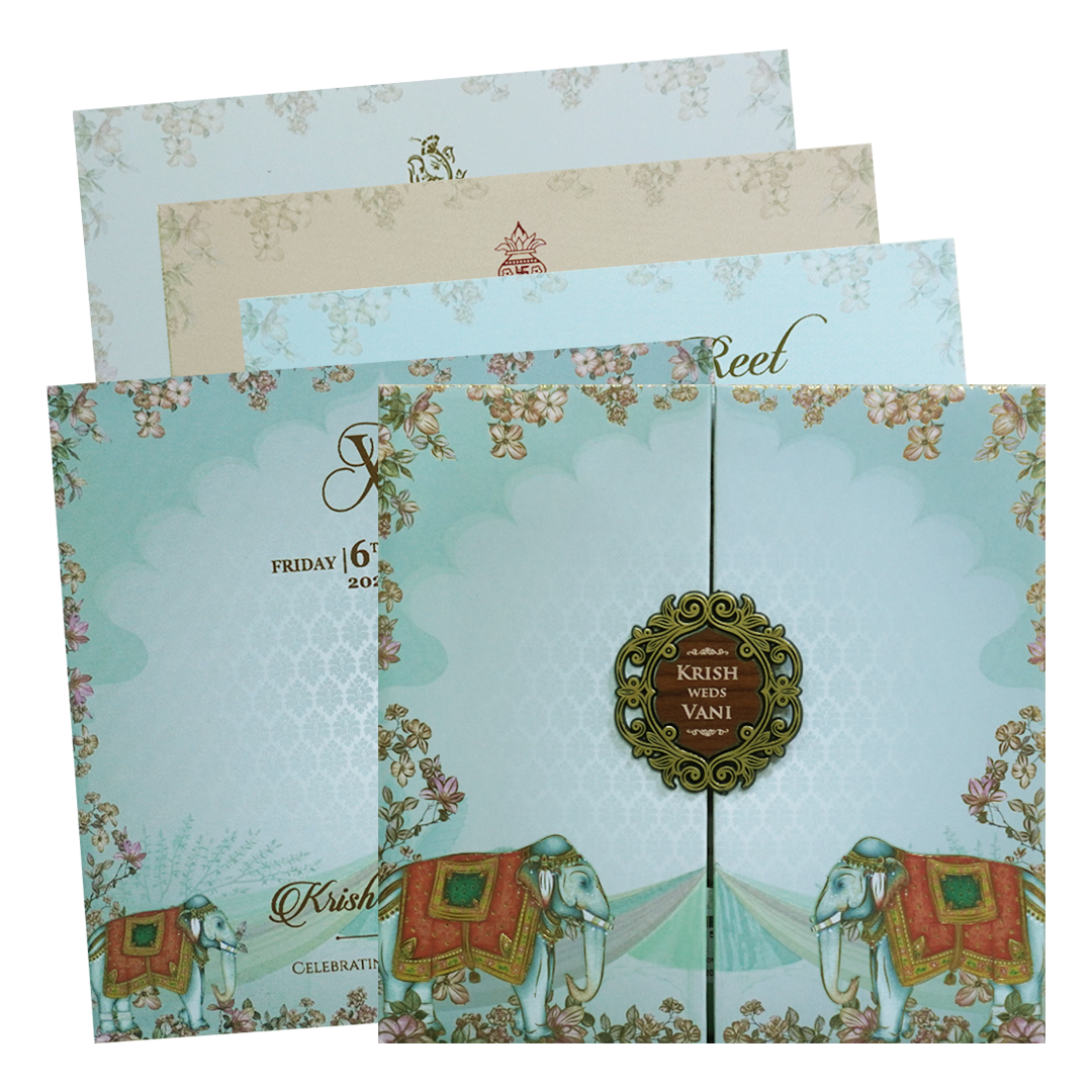Mint Blue Floral Ganesha Wedding Card-KNKJ1089Mint Blue Floral Ganesha Wedding Card-KNKJ1089- Regular price