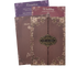 This brown padded wedding card features double door opened, a rich brown base with elegant gold floral motifs and subtle pastel embellishments. The ornate wooden nameplate  making it perfect wedding celebration.Set includes envelope and inserts.