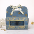 Elegant blue floral leaf return gift hamper with gold foiling and gold ribbon handle, includes 2 matching floral airtight tin jars.
