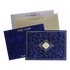 This blue gold floral padded wedding card features a premium blue cover with gold embossed floral motifs and an elegant gold nameplate. The ornate design and luxurious finish make it a stylish choice for grand wedding celebrations. Each card comes with a matching envelope and 2 inserts for a complete premium invitation package.