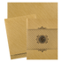 This classic gold wedding invitation card featuring an elegant Ganesha sticker and intricate traditional patterns. Crafted in rich gold tones with a refined texture finish.Set includes envelope and inserts.