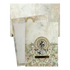 This cream marble wedding card with pastel floral artwork at the bottom and a round ganesha sticker with gold nameplate.Set includes envelope and inserts.