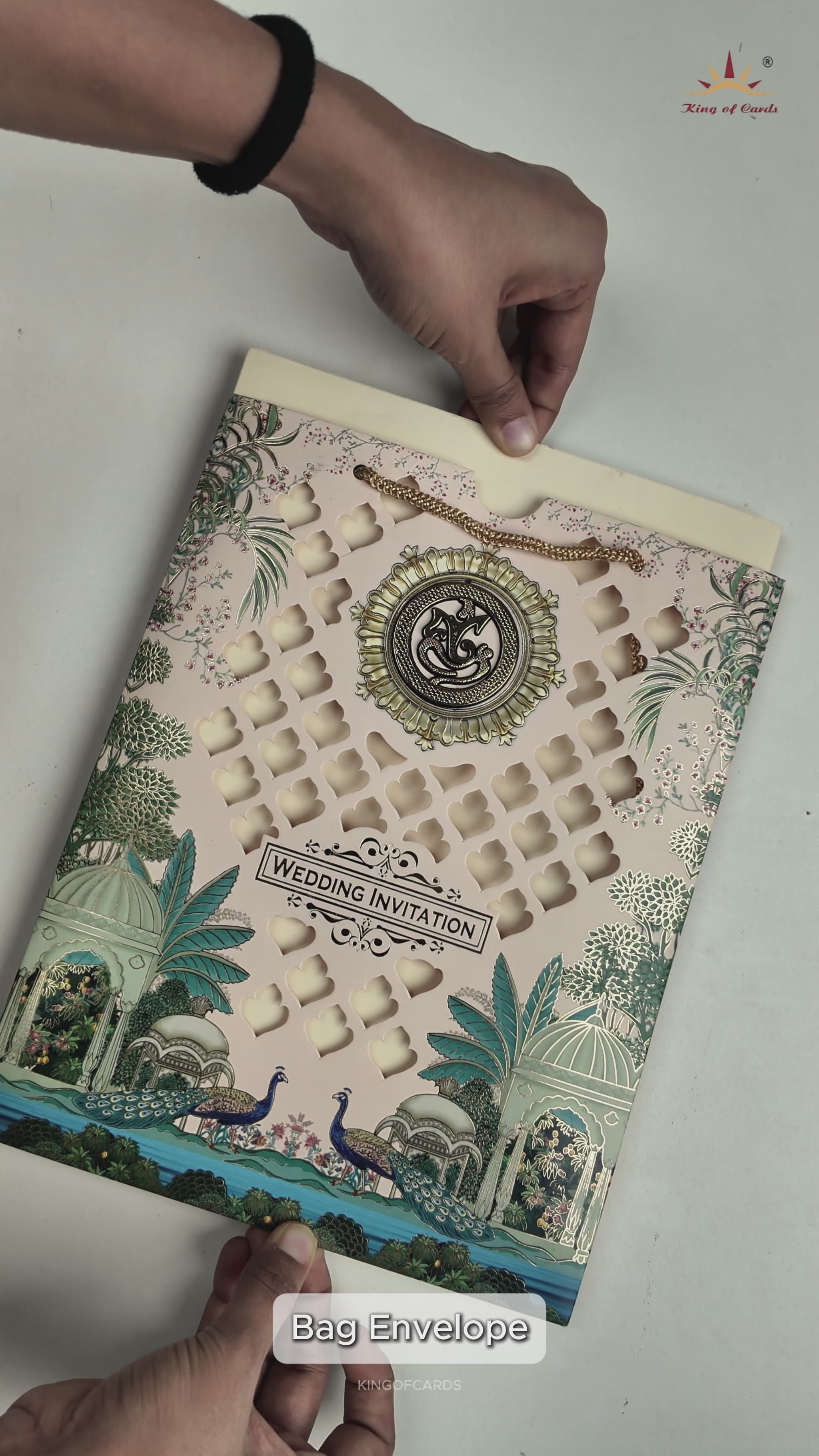 ✦ Laser-cut design with floral, palace, and peacock theme