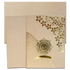 This Elegant cream wedding card adorned with gold floral design and a prominent Ganesha Sticker and Gold nameplate.Set includes envelope and inserts.
