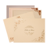 This Cream padded wedding card with elegant gold floral embossing and central motif. Ideal for contemporary and classy weddings. Set includes envelope and inserts.