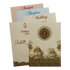 This Rich cream padded wedding card with quilted backdrop, royal palace gazebos,ornate wooden nameplate and peacock floral details. Includes envelope and 3 inserts.