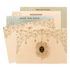 This pink wedding card with double door opened gold foil floral clusters on both panels and central gold nameplate oval filigree brooch.Set includes envelope and 2 inserts.