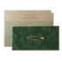 This dark green padded wedding card featuring a sleek central gold nameplate and a slim gold border.Set includes envelope and inserts.
