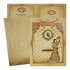 This gold bag-style wedding invitation featuring scallop-cut pattern window, royal couple illustration, ganesha sticker and gold nameplate,Set includes envelope and inserts.