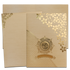 This Elegant Gold wedding card adorned with gold floral design and a prominent Ganesha Sticker and Gold nameplate.Set includes envelope and inserts.