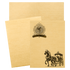 This gold wedding card featuring majestic gold horse carriage, ornate ganesha sticker with gold nameplate and traditional motifs.Set includes envelope and inserts.