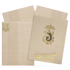 Our sandal metallic jumbo invitation card features a Ganesha design in gold foiling with embossed trunk. It also includes music instruments printed in gold foiling.