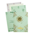 This graceful double-door wedding card features a green backdrop adorned with intricate floral patterns and a central gold embossed Ganesha emblem. The metallic personalized nameplate adds a touch of sophistication, making it perfect for modern yet traditional wedding celebrations. Comes with a matching envelope and 3 inserts for a complete invitation set.