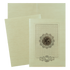 This radiant green wedding card centers on a majestic embossed Ganesha sticker by lotus petals in mandala design over textured jaali background.Set includes envelope and inserts.