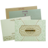 This elegant padded wedding card showcases a mint green base with intricate laser-cut gold floral designs and a luxurious, tactile finish. Featuring a personalized gold nameplate, it blends tradition with premium craftsmanship. Each card comes with a matching envelope and two colorful inserts, perfect for an upscale wedding experience.