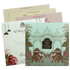 This Traditional green padded wedding card with embossed palace domes, grand arches, and royal baraat procession in intricate gold and green detailing. Includes a envelope and 3 inserts, perfect for lavish Indian celebrations.