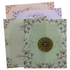 This green wedding invitation featuring delicate purple floral patterns throughout and a sophisticated gold circular laser-cut nameplate at the center. The subtle botanical design creates a timeless appeal. Listing includes envelope and 2 inserts for memorable celebrations.
