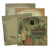 This green royal padded wedding card features a majestic bride and groom in exquisite attire, placed against an opulent palace setting with lantern motifs, floral arrangements, peacock accents, and rich green hues with gold nameplate.Set Includes envelope and inserts.