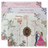 This charming padded wedding card features double door opened, a romantic couple dancing under blooming grey-toned trees with soft pastel florals adorning the scene.Central ornate wooden nameplate make it a delightful choice.Set includes envelope and inserts.