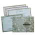 This elegant padded wedding card features embossed and printed white floral motifs with gold highlights,  The design is finished with a centrally placed ornate wooden plate, and comes with a envelope and 3 inserts.