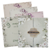 This elegant padded wedding card features embossed and printed white floral motifs with gold highlights.The design is finished with a centrally placed ornate wooden plate, and comes with a envelope and 3 inserts.