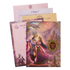 This padded wedding card features Krishna and Radha in a vibrant garden scene, peacock motifs, divine temples, and magical skies. The opulent artwork and intricate orante wooden nameplate make it ideal for spiritual and elegant wedding celebrations. Set includes envelope and inserts.