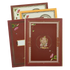 This Maroon padded wedding card featuring an intricate Ganesha motif at the center,bordered by detailed golden designs and accented with lotus flowers.Set includes envelope and 2 inserts.