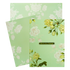 This mint green rose floral wedding card is adorned with soft yellow and pink roses, creating a fresh, romantic botanical look around the edges, and gold nameplate.Set includes envelope and inserts.