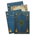 This navy blue padded wedding card adorned with double door opened, gold lantern artwork, an intricate arch border. The deep navy base, ornate gold nameplate, and gold detailing create a rich, royal look.Set includes envelope and inserts.