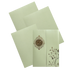This olive green hindu invitation card has texture sheet with gold foil printing and door type opening with a ganesha sticker.