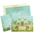 This pastel mint green peach wedding cards feature delicate floral patterns with soft green and peach tones, highlighted by exquisite gold embossing. The elegant fold design includes a luxurious tassel and coordinated 2 inserts, making them perfect for sophisticated, modern wedding celebrations.