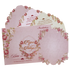 This pink wedding card featuring elegant floral cutout artwork, ornate gold accents, and a unique shape with a matching gold ribbon. The set includes a beautifully coordinated insert and a central name plaque for a luxurious celebration. Envelope and 3 inserts are included for a complete premium wedding invitation set.