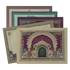 This pink wedding card features laser-cut grand temple arch with flanking elephants, central gold Ganesha sticker,intricate floral and paisley borders,gold tassel hanging from the top.Set includes envelope and 3 inserts.