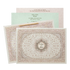 This pink gold mandala bag style wedding card with ornate cutout embossed floral designs and EP-sticker.Set includes envelope and 2 inserts.