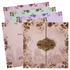 This pink padded wedding card features intricately embossed floral clusters in gold, black, and ivory, with an elegant double-door design and ornate vintage centerpiece. The sophisticated botanical artwork and soft tones make it a perfect choice for modern celebrations. Each card comes with a matching envelope and colorful 3 inserts.