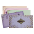 This purple padded wedding card features intricate floral designs in soft cream,wooden nameplate and gold tones. The luxe presentation and gentle hues create a sophisticated look, ideal for modern wedding celebrations. Set includes envelope and inserts.