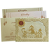 This royal beige embossed gold foil wedding invitation card features an opulent baraat procession with detailed elephant and musician artwork, regal nameplate, and intricate raised patterns. Its luxurious beige color and ornate borders make it a refined and grand choice for traditional celebrations.