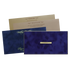 This royal blue velvet padded wedding card features a luxurious velvet texture with a sleek gold border and modern nameplate centerpiece. The bold blue shade and elegant finish are perfect for upscale wedding celebrations. Includes envelope and  2 inserts.