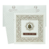 This Elegant white wedding card highlighted by a rich embossed floral border, delicate embossed gold foiling texture and a classic Ganesha sticker and wooden nameplate.Set includes envelope and folded inserts.