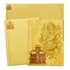 This vibrant yellow balaji ganesha wedding card showcases an intricately embossed image of Lord Ganesha along with a detailed Tirupati Balaji temple illustration at the base,and Set includes envelope and inserts.